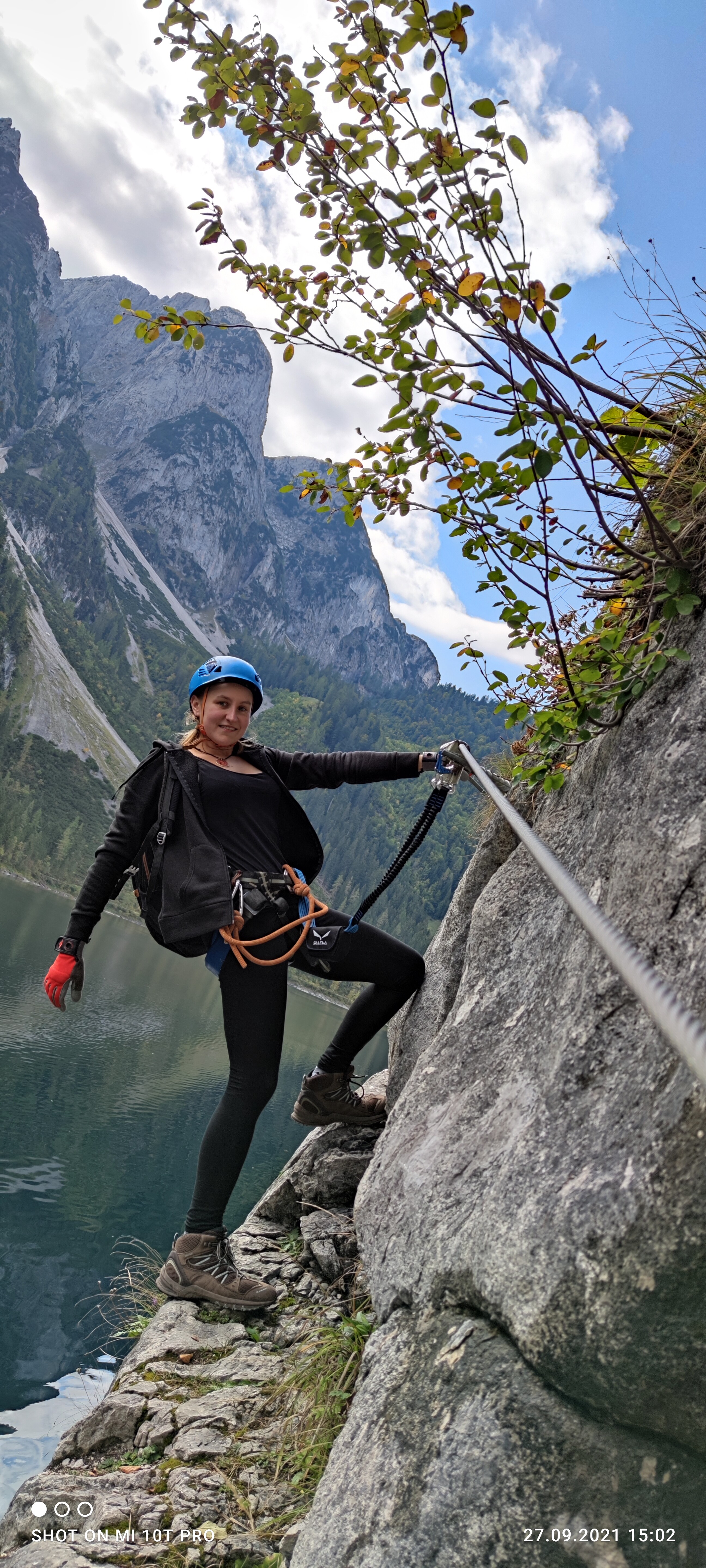 Ferrata ta choć bardzo krótka i bez wzbijania się na szczególne wysokości robi całkiem niezłe wrażenie - najpierw idzie się nad samą taflą jeziora, następnie po drabince przechodzi się nad ścieżkę, by po krótkiej wspinaczce przejść mostkiem idealnie ponad głowami zdziwionych turystów. Na całej trasie towarzyszy nam widok Dachstainu (no, my to sobie mogliśmy jedynie ten widok wyobrazić). Niektórych w tym punkcie zestresować mogą wspomniani turyści, którzy często wyciągają aparaty i fotografują to "dziwne zjawisko". Laserer Alpin Klettersteig jest stosunkowo łatwa i raczej nikt nie powinien mieć problemów z przejściem jej - oczywiście w odpowiednim sprzęcie. Chodzenia bez rękawiczek nie polecam (tak, byłam na tyle głupia, by to wypróbować - dziury w rękach leczyłam przez następnych kilka dni).
